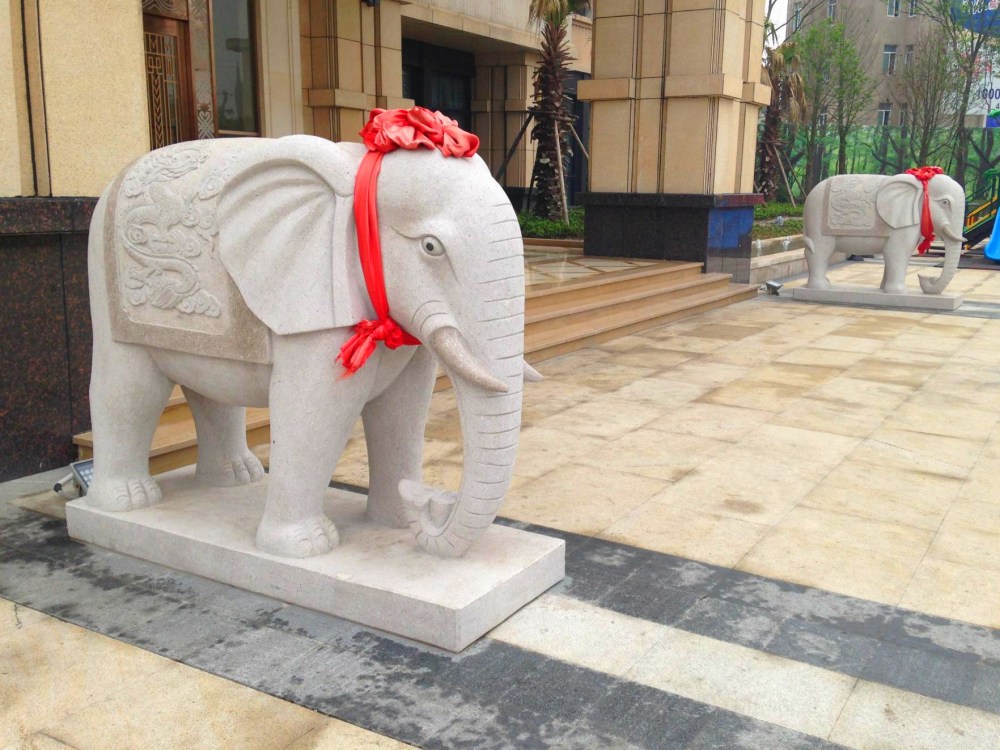 石雕大象简介:石雕大象就是用石头雕刻出来的大象,是在中国传统建筑中经常使用的一种装饰物。在中国的宫殿,寺庙,佛塔,桥梁,府邸,园林及大宅大院上都会看到它。其可用的石材有天青墨玉、晚霞红、汉白玉、佘太玉、砂岩、大理石、花岗石、银灰白石、雪花白等。