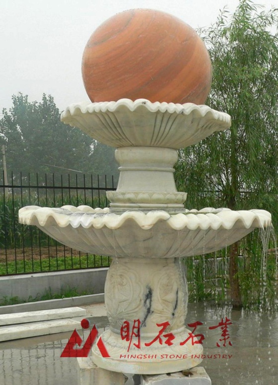 青岛晚霞红大理石风水球制作...